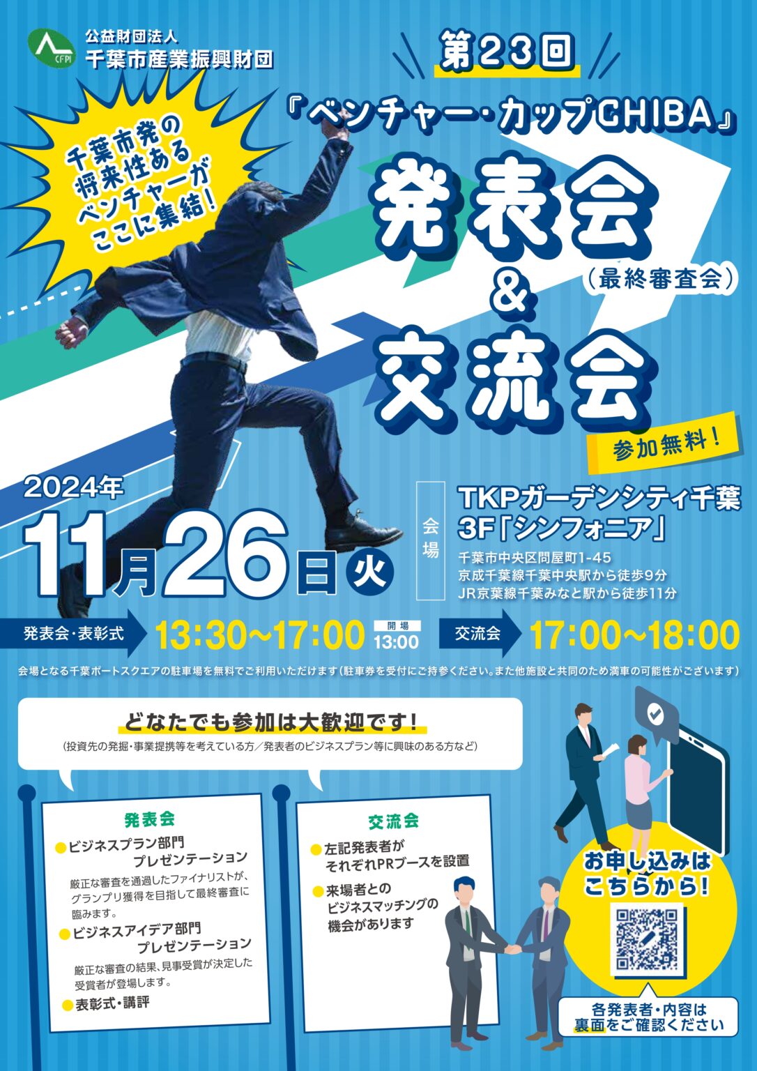 - 第23回ベンチャーカップ千葉 (千葉産業振興財団【11/26開催】第23回『ベンチャー・カップCHIBA』発表会・交流会の来場者を募集します!)