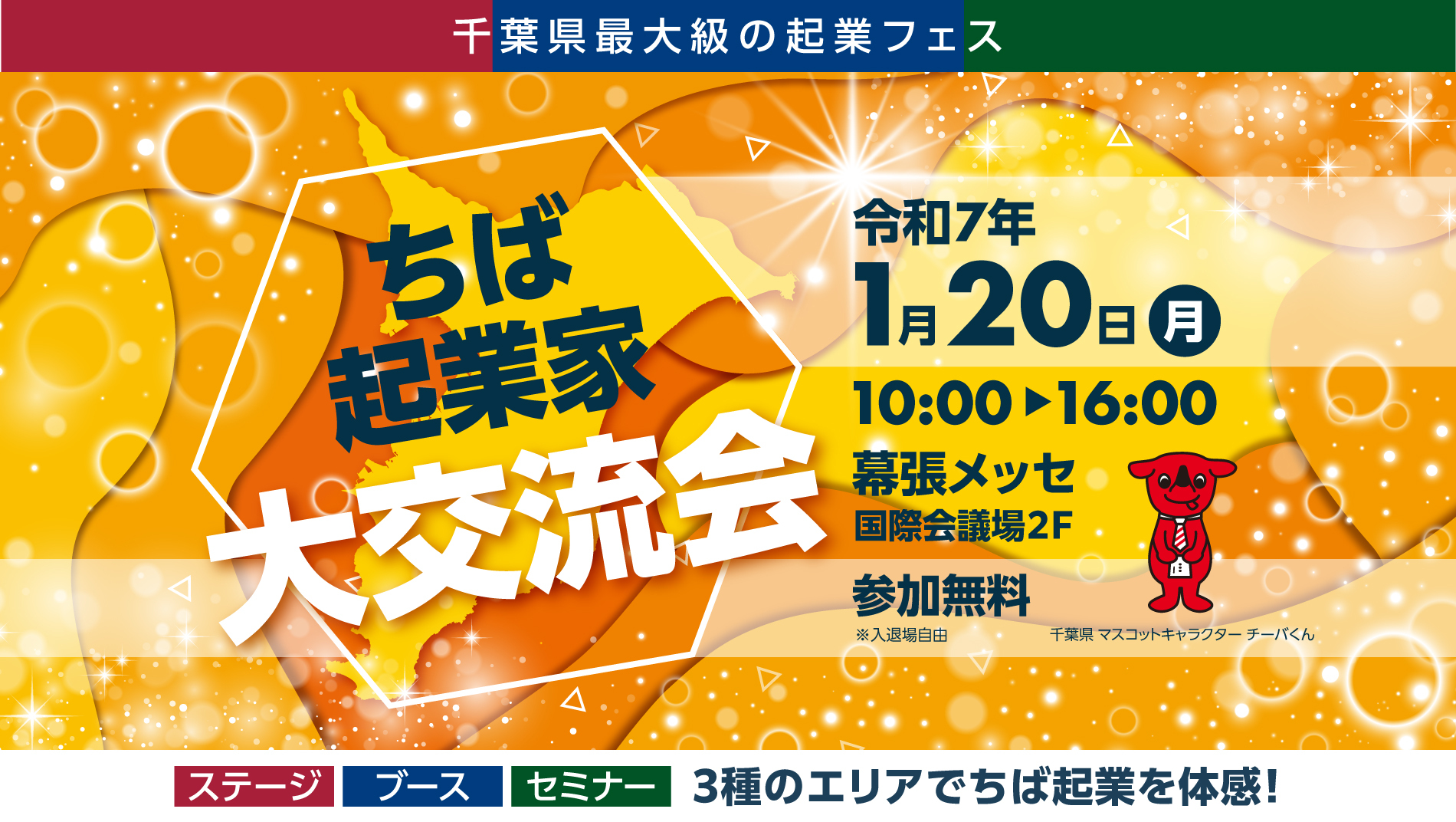 本イベントは千葉県が主催する起業家支援イベントで、当社を含む5社のファイナリストが登壇し、千葉県の活性化や課題解決につながるビジネスプランを発表します。
